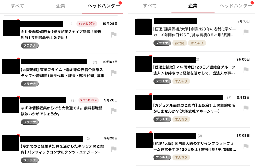 - ヘッドハンターからのスカウトが多く、週2〜3件ペースで届く