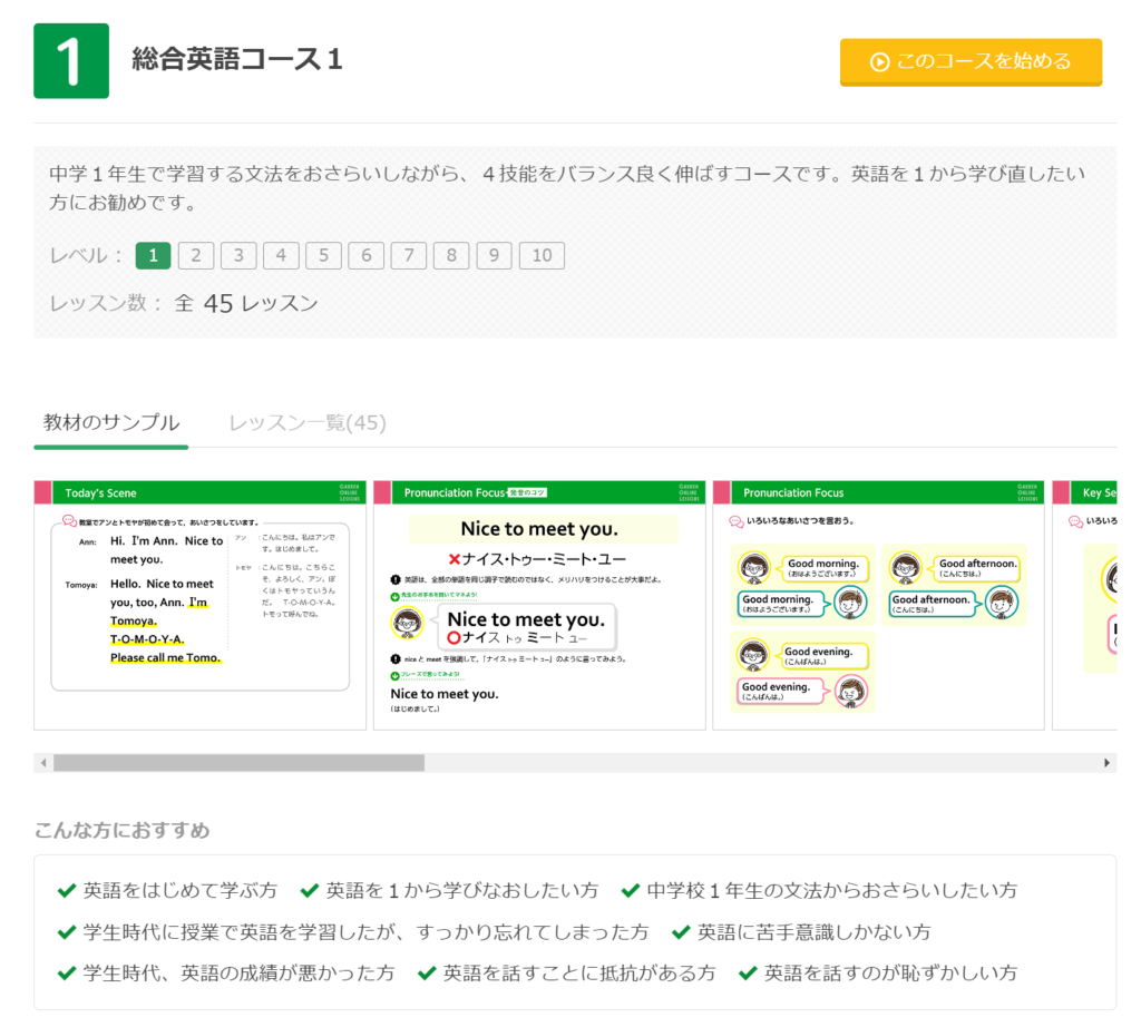 まずはなんといっても英語初心者にとって非常にありがたい仕組みが整っているというところ。
