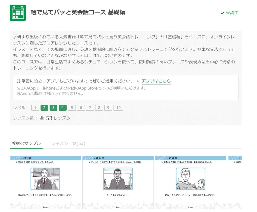 総合英語コース2の途中から、「より実践的な英語を学びたい!」と思ったので総合英語コース3には進まずに「絵で見てパッと英会話コース 基礎編」を受講しました。