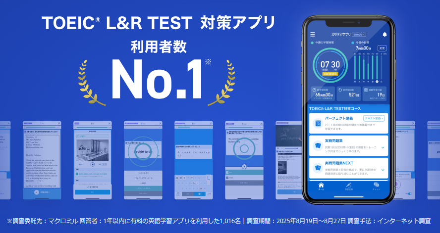 実は英会話学習と並行して、TOEIC対策もやっていました。使っていた学習アプリは「スタディサプリ ENGLISH」