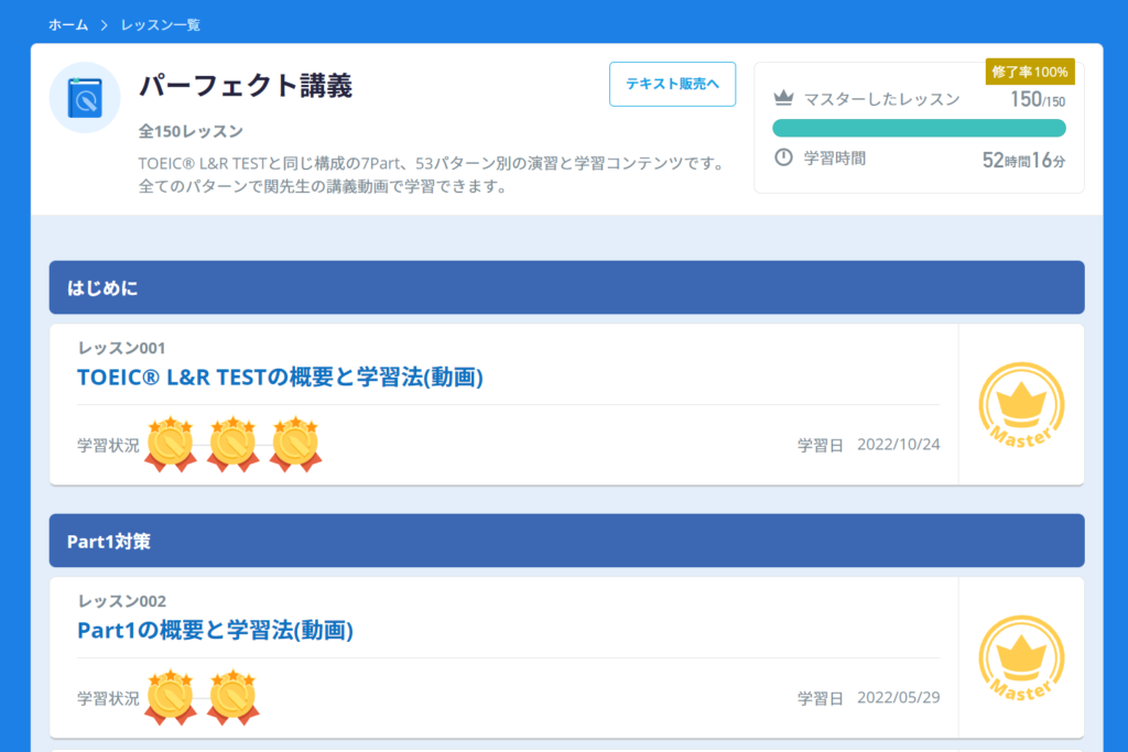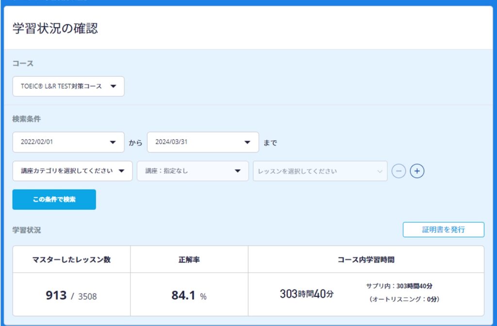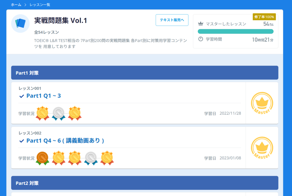 TOEIC500点レベルを目指していた時と同様に、引き続きスタディサプリ ENGLISH(TOEIC対策コース)を利用していました。